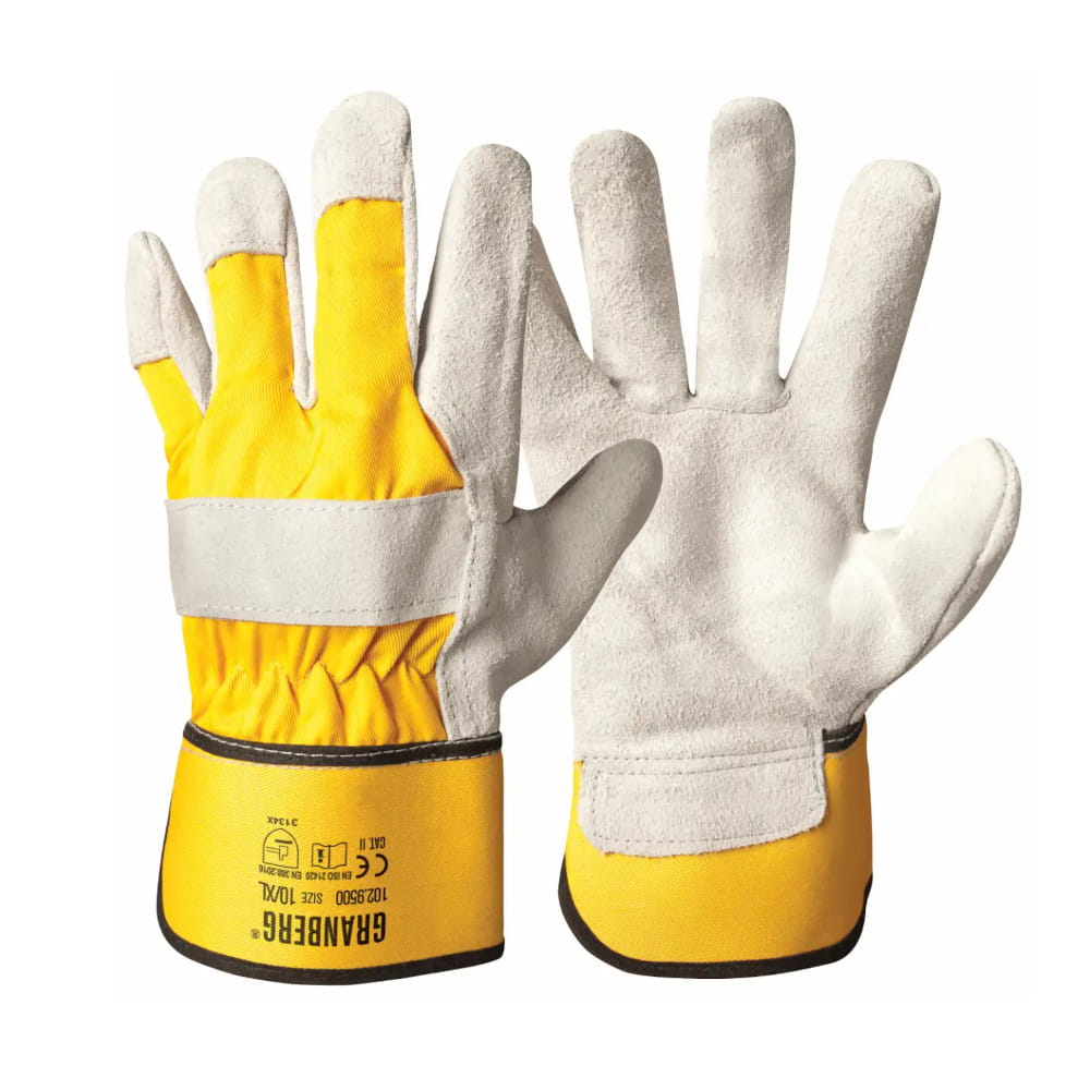 Rękawice GRANBERG ECONOMY 102.9500 z dwoiny bydlęcej z gumowanym mankietem. Wysoka odporność na zużycie i przetarcia.